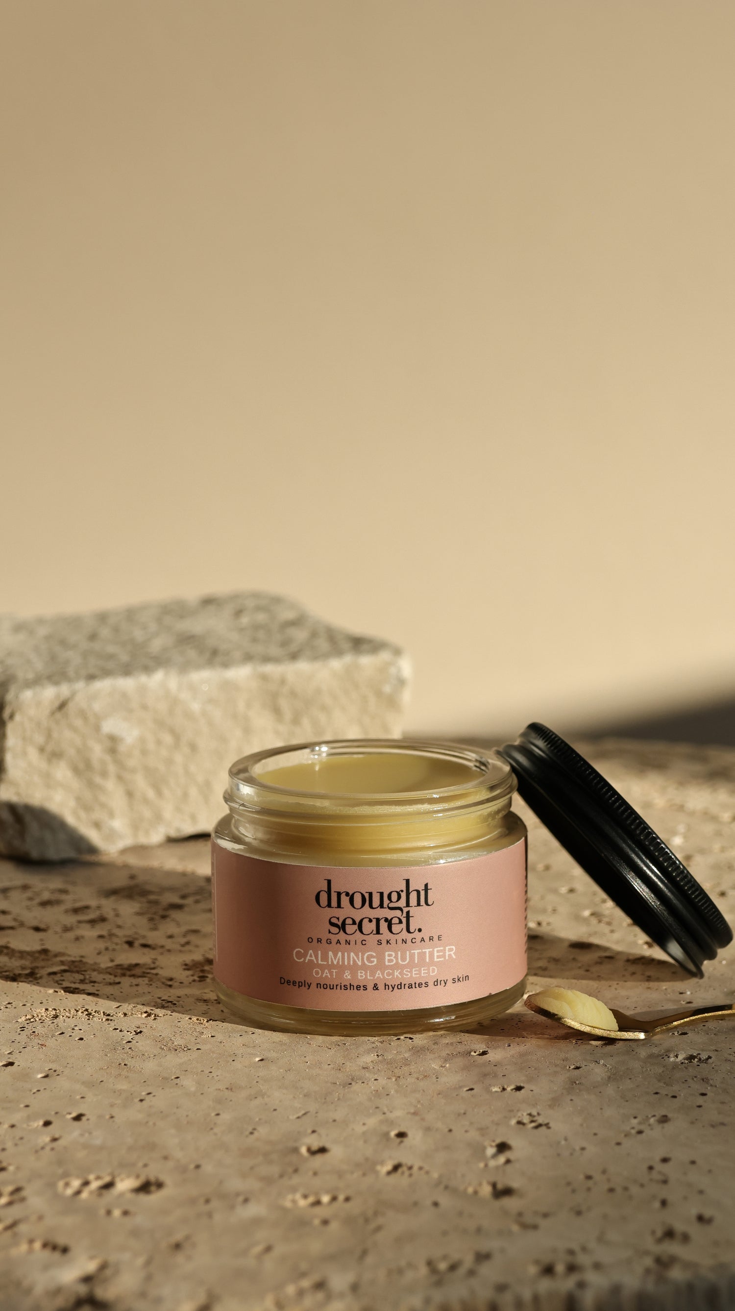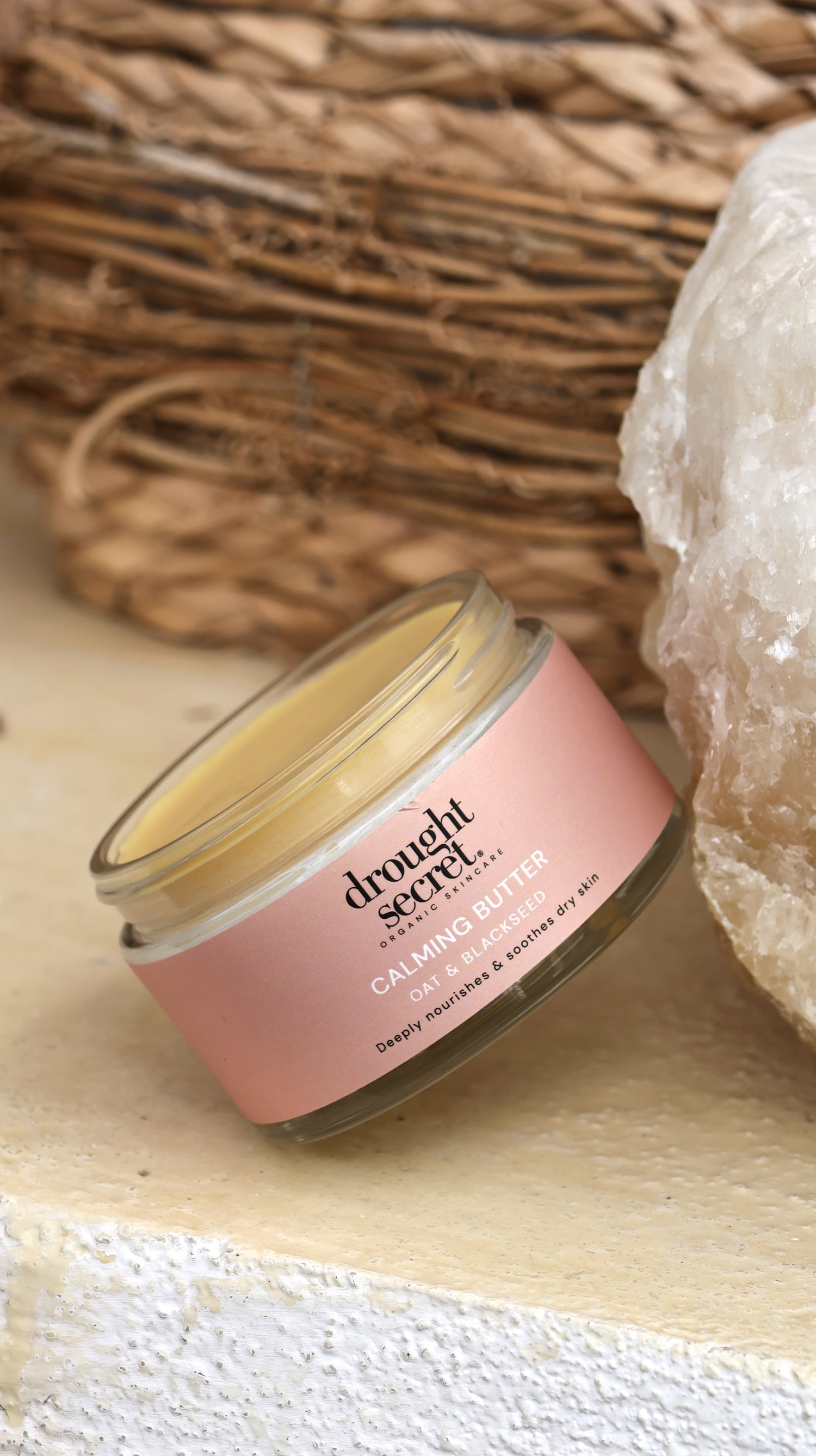 To keep Calming Butter at its best, store it in a cool, dry place away from direct sunlight and heat. In winters, keep away from the radiator and windowsills. If it warms up, the texture may gently change and become a little grainy — but rest assured, this doesn’t affect its soothing power or effectiveness.